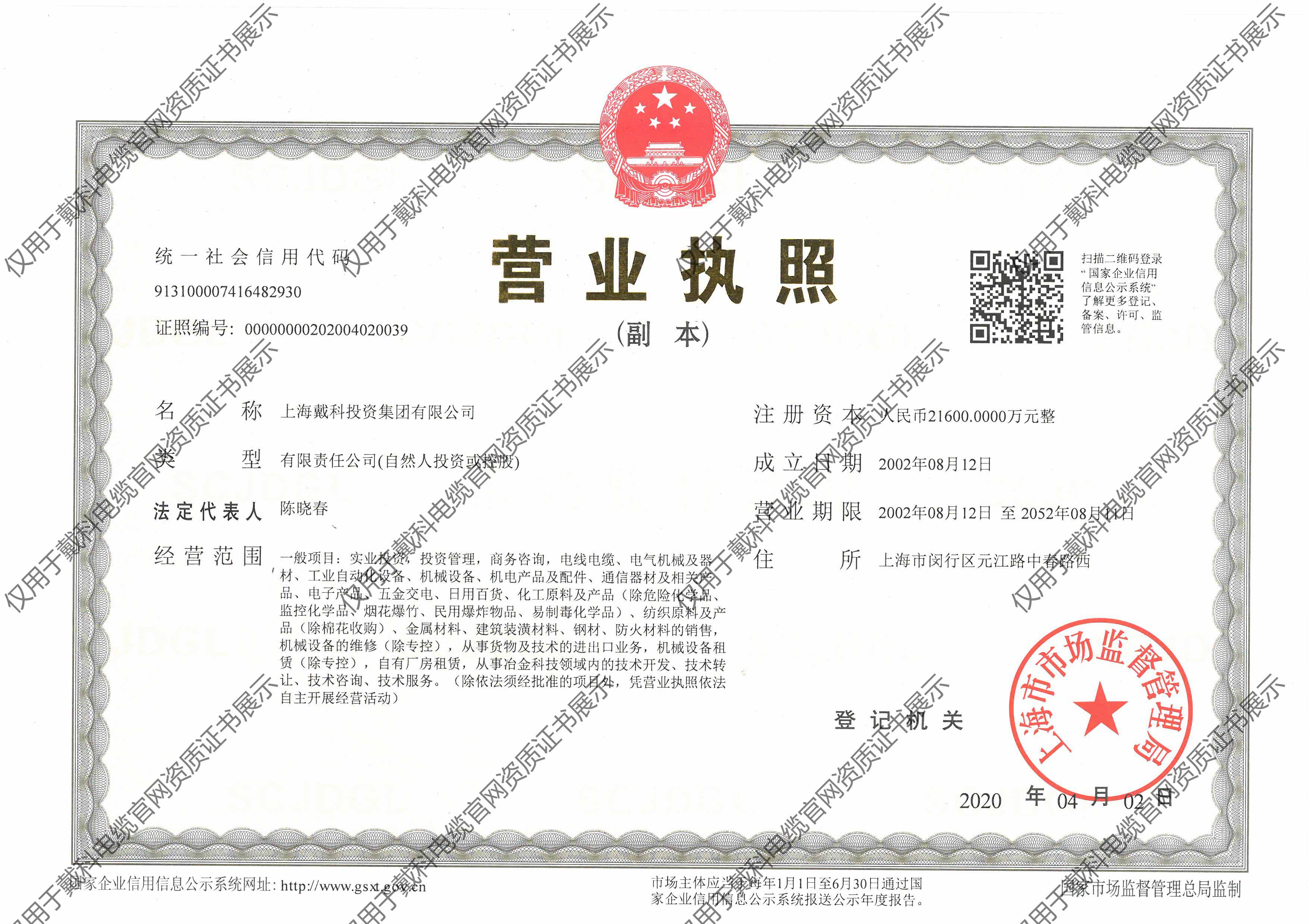 集团下属全资控股公司有:上海戴科电缆厂、上海戴科电器发展有限公司、上海冶金科技有限公司、北京戴科国际投资有限公司、北京通信器材有限公司、辽宁戴科国际贸易有限公司、辽宁鞍山电气有限公司、广州电气有限公司,成都分公司、济南分公司、贵阳分公司、昆明分公司、武汉分公司、西安分公司、银川分公司等及近百家办事处和营销服务机构。